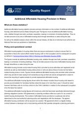 Background Additional affordable housing provision: quality report This report covers the general principles and processes leading up to the production of our statistics. First published: 18 October 2018 Last updated: 13 November 2025 Documents Quality report Quality report , HTML HTML Series Affordable housing provision Related Statistics and research
