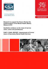 This is the latest release in the series: Research to support the Duty to Review the Mental Health (Wales) Measure 2010