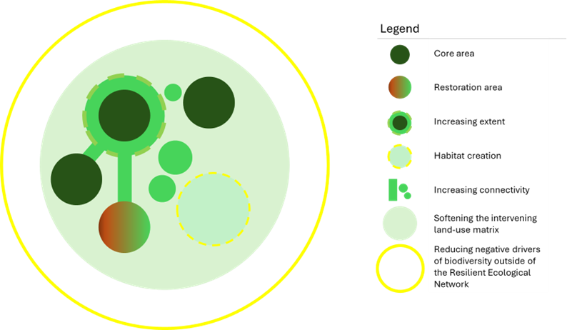 The concept of RENs recognises that ecosystem processes occur at a landscape scale and often beyond the boundaries of individual sites. The resilience of ecosystems relies on these processes, such as pollination and seed dispersal, on being functionally and structurally connected.