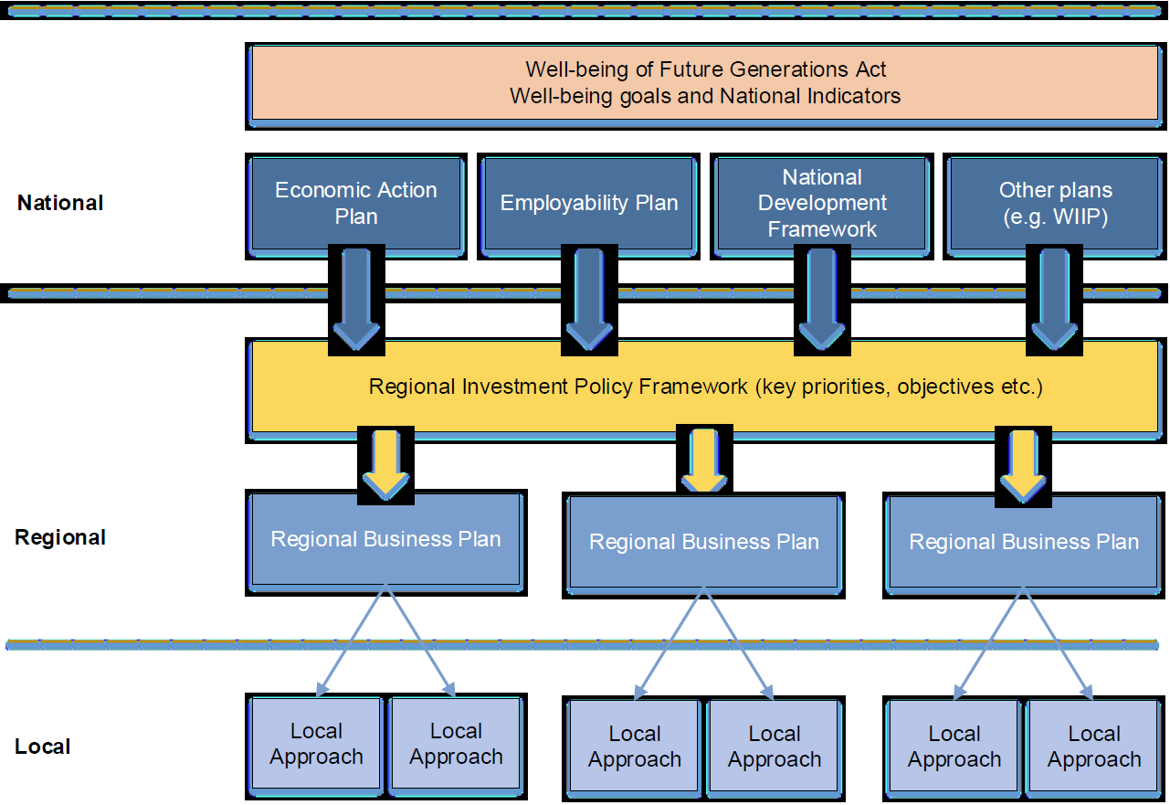 • Welsh Government to set a national framework for investment, defining shared objectives, but including flexibility for regions and local areas to set their own priorities based on local knowledge.
