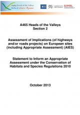 A465 Heads of the Valleys section 2 Gilwern to Brynmawr: Conservation of Habitats and Species Regulations 2010 statement , file type: PDF, file size: 54 MB