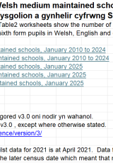 Number of Sixth Form pupils in English and Welsh medium maintained schools, 2010 to 2025 , file type: ODS, file size: 106 KB