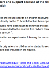 - Children receiving care and support because of the risk of, or actual, abuse or neglect by local authority, at the 31 March 2017 to 2019