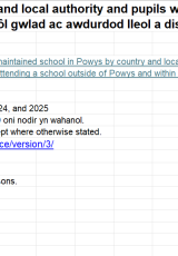 - Pupils attending a school in Powys by country and local authority and pupils with a home postcode in Powys and within Wales attending a school in another local authority, 2023 to 2025