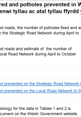 - Resurfaced roads, potholes repaired and potholes prevented in Wales, April to October 2025