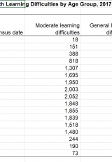 Pupils with learning difficulties and multiple special educational needs provisions, 2017 to 2019 , file type: ODS, file size: 15 KB