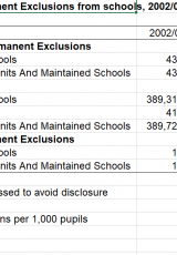 Rate of permanent exclusions from schools, September 2002 to August 2018 , file type: ODS, file size: 13 KB