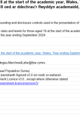 - Employment rate for those aged 18 at the start of the academic year, Wales, Year ending September 2020 to year ending September 2024