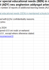 Reports of additional learning needs (ALN) or special educational needs (SEN) in maintained schools by type of need and provision in North Wales, January 2024 , file type: ODS, file size: 7 KB