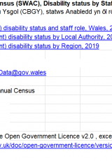 School Workforce Annual Census, disability status by staff role, 2019 , file type: ODS, file size: 21 KB