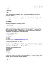 Resignation letter , in Welsh only, file type: PDF, file size: 118 KB