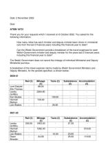 A breakdown of the travel expense claims made by Welsh Government Ministers and Deputy Ministers.