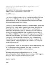 Copies of correspondence from Huw Irranca-Davies to Welsh Government regarding the Arbed Scheme in Caerau.