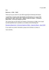 A copy of the Emergency Department, University Hospital of Wales, Inspection Report - March 2024.
