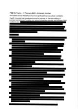 Copies of briefings on the subject of Cardiff University’s recent cuts announcements.