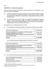 Breakdown for International Relations and International Sustainable Development expenditure for 2023 to 2024.
