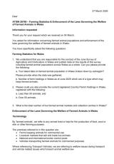 Farming statistics and the enforcement of the Laws governing the welfare of farm animals.