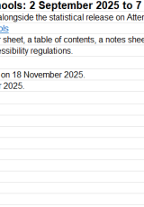Attendance of pupils in maintained schools: 2 September to 7 November 2025 , file type: ODS, file size: 45 KB