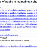 Management information provided by schools in Wales on attendance of pupils in maintained schools from 6 September to 19 November 2021.