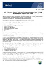 Second address estimates for local and unitary authorities in England and Wales, 2011 , file type: PDF, file size: 82 KB