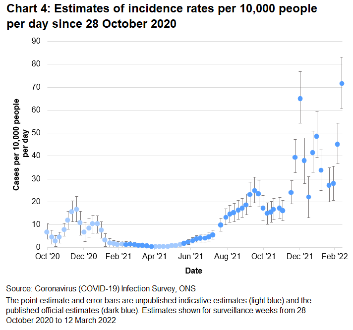 For more information on the method of estimating incidence please see the methods article on the ONS website.