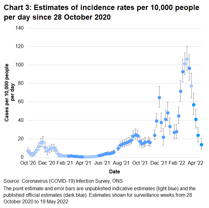 For more information on the method of estimating incidence please see the methods article on the ONS website.