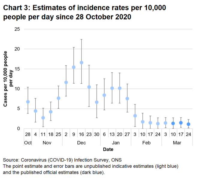 Coronavirus (COVID-19) infection survey (positivity estimates): 28 March to 3 April 2021