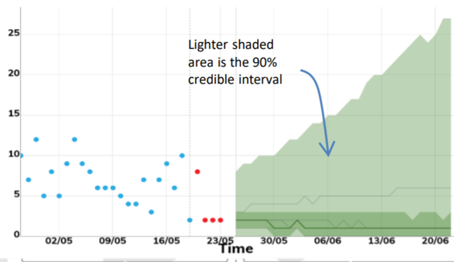 - Hospitalisations per day - continue to decrease to under 1 per day over the next four weeks. Source: Modelled medium term projections, SAGE, 18 May