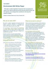 This white paper sets out proposals for the Environment (Wales) Bill. This bill will ensure that we have the right legislative framework to manage our natural resources in a joined-up way as committed in the Programme for Government. This includes proposals for a new area-based planning approach to natural resource management. This is intended to complement existing and proposed planning and sustainable development laws to deliver economic social and environmental benefits for Wales.