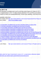 - The Welsh Fire and Rescue Authorities attended 2,090 grassland, woodland and crop fires in 2017-18, an increase of 22% on 2016-17. The number of these fires is prone to fluctuation and the 2017-18 figure follows a period of instability. The 2017-18 figure is the second lowest in the time series (from 2001-02).
