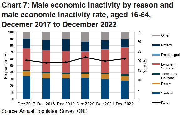 This section analyses the reasons given for people being economically inactive, the proportions and rates presented in this section include students in order to provide a comprehensive breakdown of these reasons.