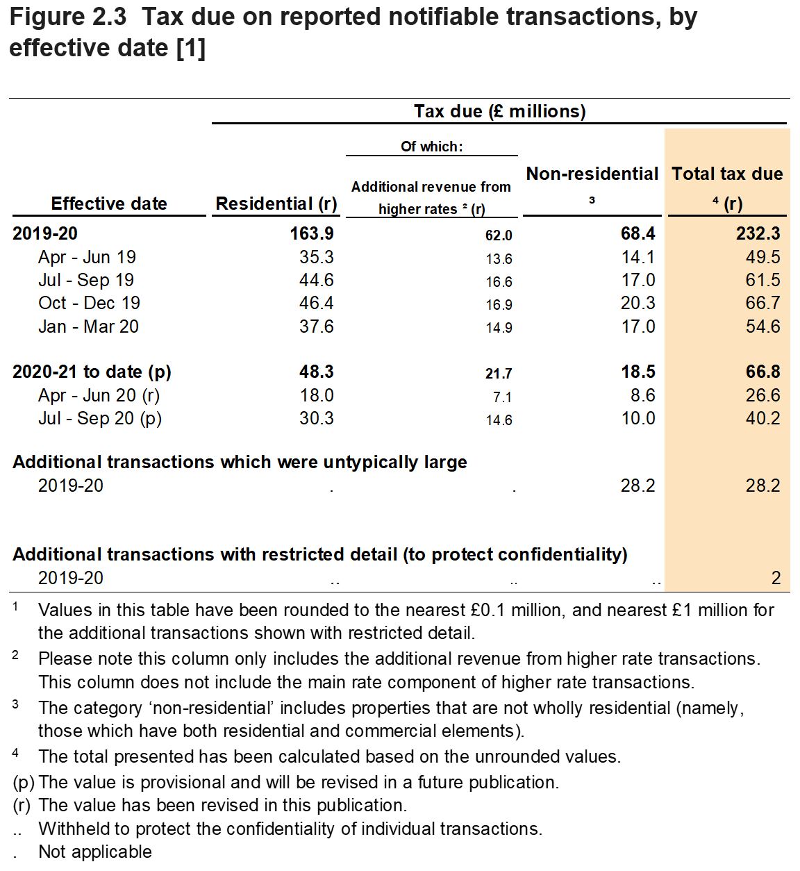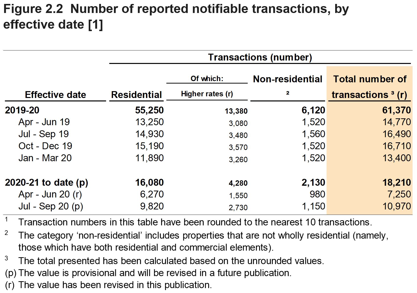 To understand the impacts on number of transactions, tax due and value of property taxed, users should refer to the section of this release ‘Effects of coronavirus (COVID-19) and the LTT rate change on 27 July 2020’.