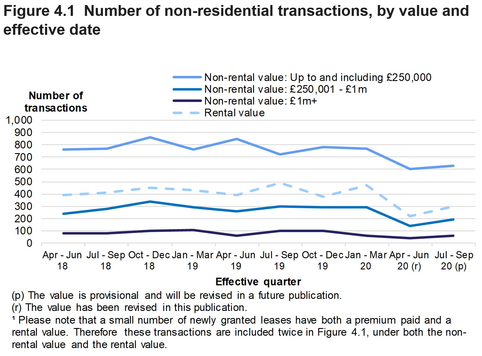 Within this number though , higher rate residential transactions have recovered to a greater extent. The number of higher rate residential transactions in September 2020 was only slightly below that seen in September 2019.