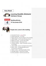 Learning Disability Ministerial Advisory Group meeting - easy read version: minutes 4 December 2018 , file type: PDF, file size: 967 KB