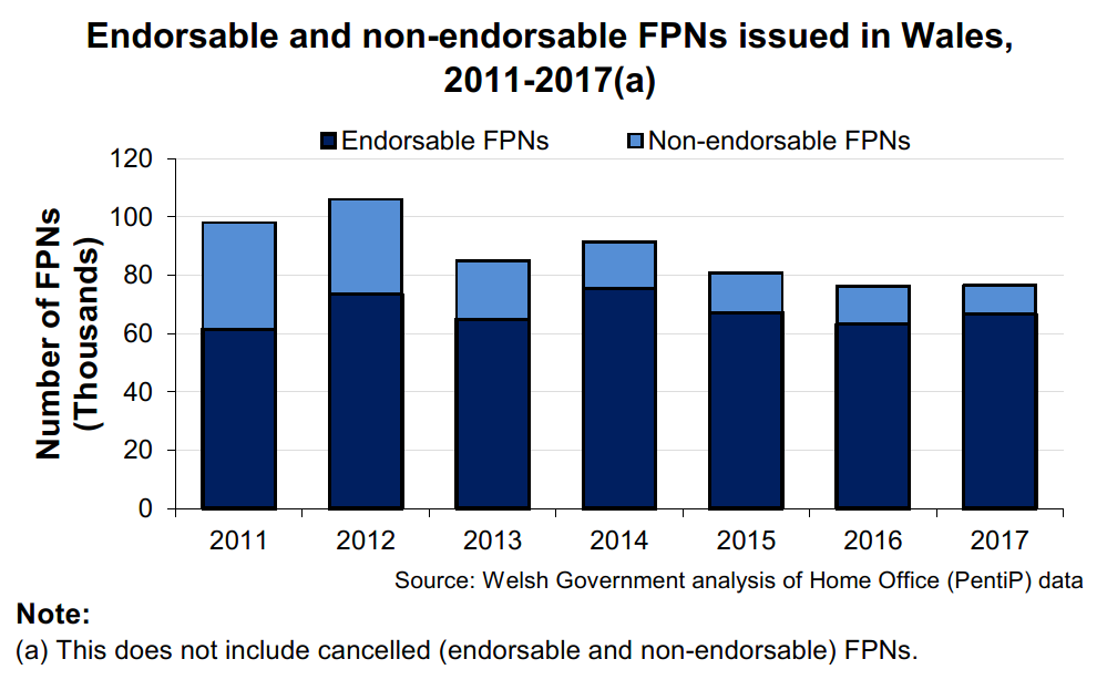 - In 2017, police and traffic wardens issued 76,600 FPNs in Wales, an increase of 0.4% compared with 2016.