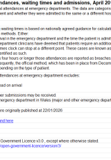 Emergency department attendances, waiting times and admissions, April 2012 onwards , file type: ODS, file size: 23 KB