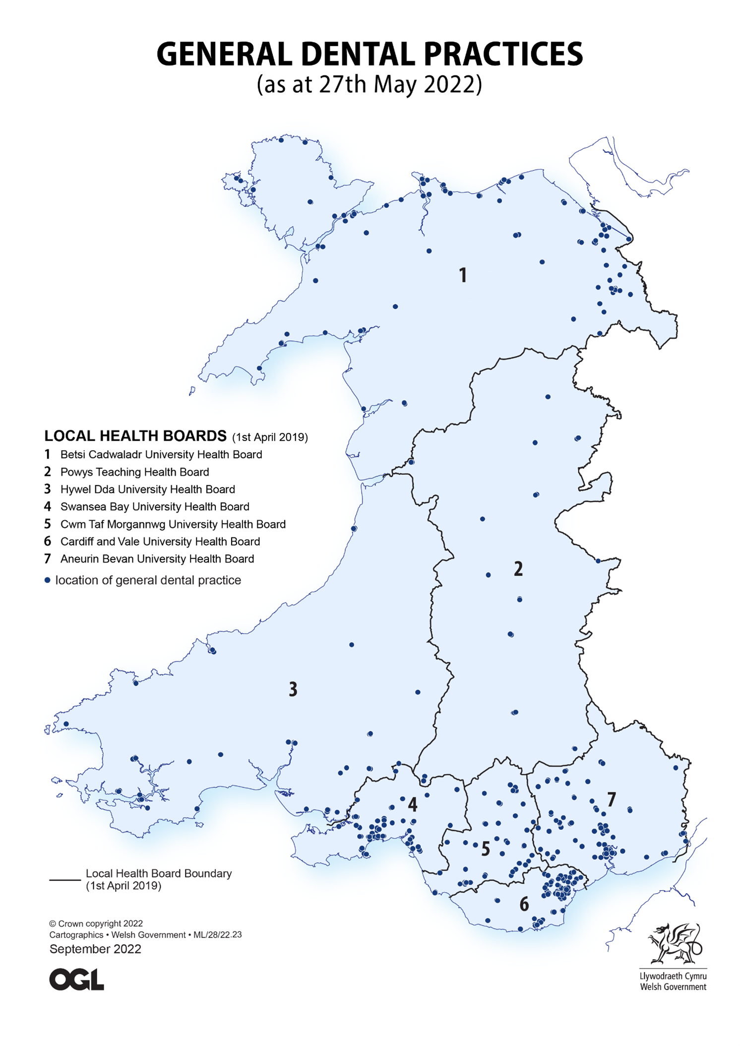 All dentists undertaking NHS dentistry in Wales are required to be registered on the Dental Performers’ List which is maintained by NHS Shared Services Partnership. When registering, a dentist self-reports if they are able to speak Welsh. This information is currently collected by a simple ‘Yes/No’ question, rather than grading their level of fluency and is not typically updated throughout the dentist’s tenure on the list.