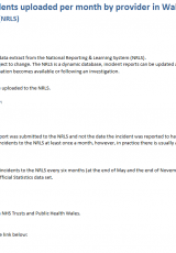 Number of patient safety incidents uploaded per month by provider in Wales: September 2017 to August 2018 , file type: XLSX, file size: 161 KB