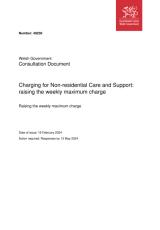 Noting the increasing extreme financial pressures on local authorities, this consultation document seeks views on amending the regulations and code of practice governing local authority charging for social care and support services under the Social Services and Well-being (Wales) Act 2014. The consultation specifically seeks views on a proposed increase to the non-residential maximum weekly charge, currently set at £100.