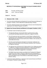 Minutes and papers for the meeting of the Regional Investment in Wales Steering Group, 25 February 2021.