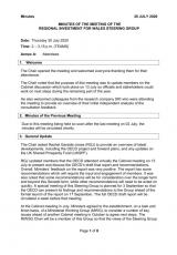Minutes and papers for the meeting of the Regional Investment in Wales Steering Group, 30 July