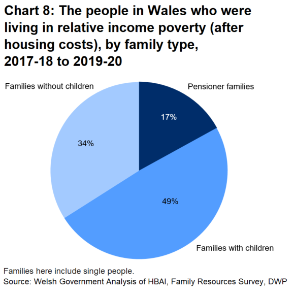 - Between 2017 and 2020, 22% of working-age adults in Wales were living in relative income poverty.