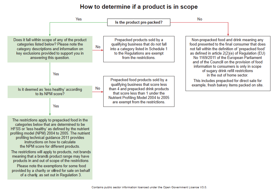 The products in scope of the regulations, known as specified food, are only subject to the restrictions if they are sold by a qualifying business.