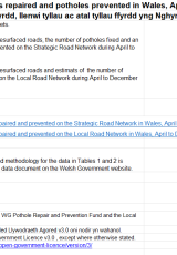 Management Information from the Welsh Government Pothole Repair and Prevention Fund and the Local Government Borrowing Initiative Fund.