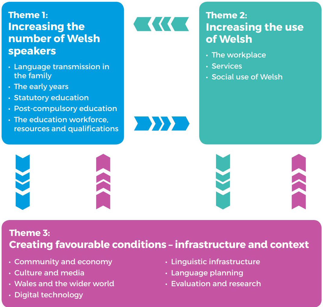 The Cymraeg 2050 strategy has 3 interrelated themes: