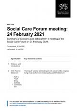 Summary of decisions and actions from a meeting of the Social Care Forum on 24 February 2021.