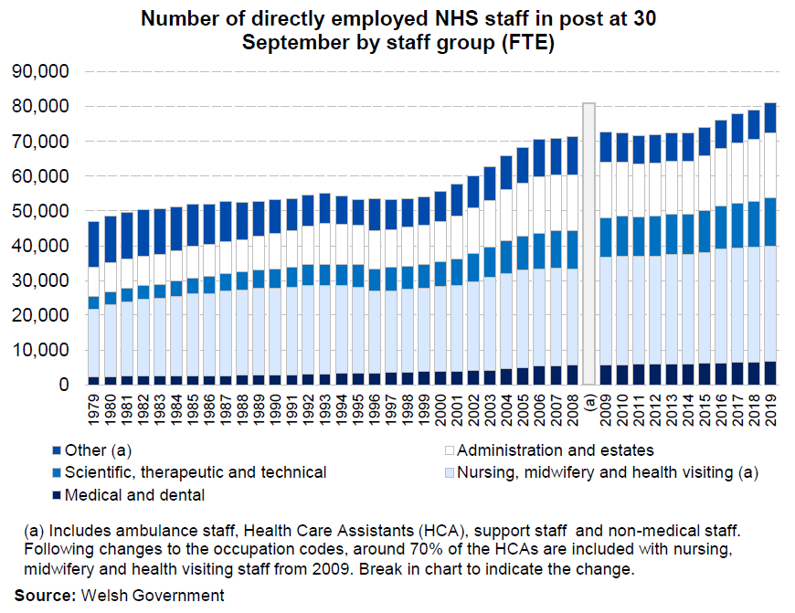 Data on medical, dental, nursing and midwifery staff, as at 30 September 2019.