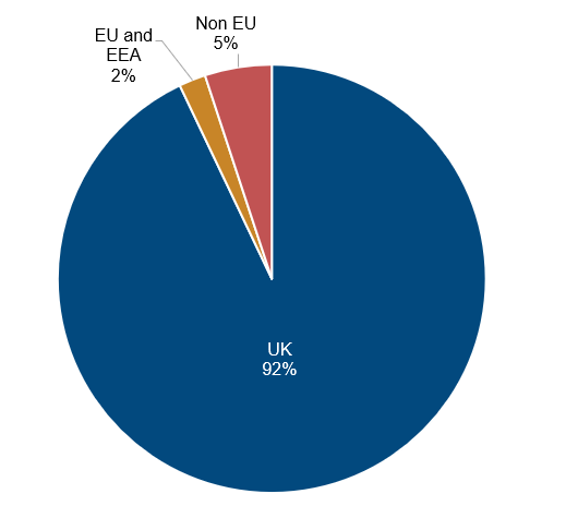 - 92% had UK nationality; 5% had non-EU nationalities and 2% had EU nationalities