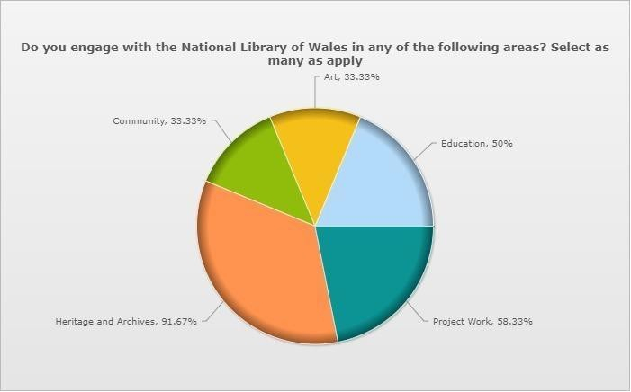 Responses from the 12 local authorities show that they were aware of the Library's work and involved with the Library in a number of areas, including education, arts, community, heritage and archive, and project work. Other areas mentioned related to digital resources including access to electronic resources such as e-books, e-journals, research resources regarding genealogy, exhibitions and cultural events.