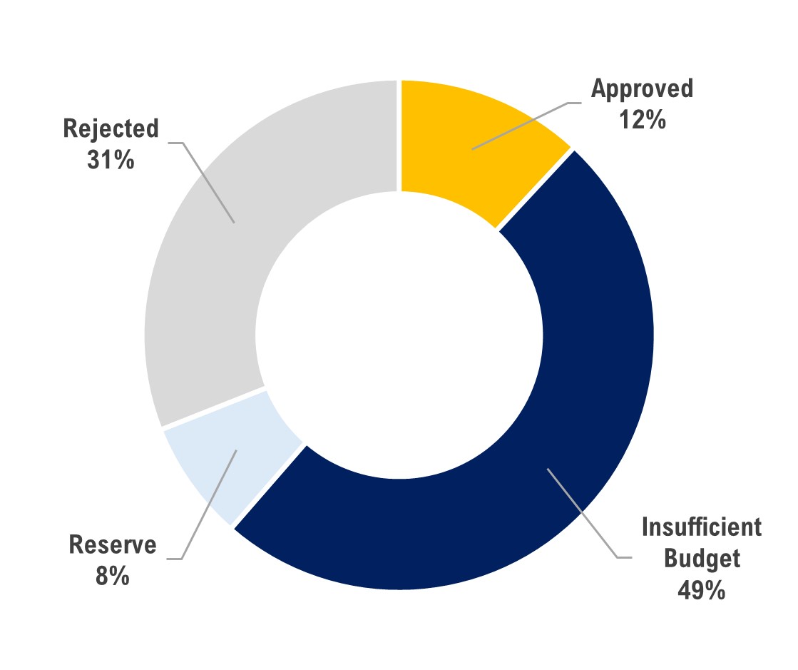 Welsh proposals to this part of the programme have been few to date (11), but have achieved good success (27%).